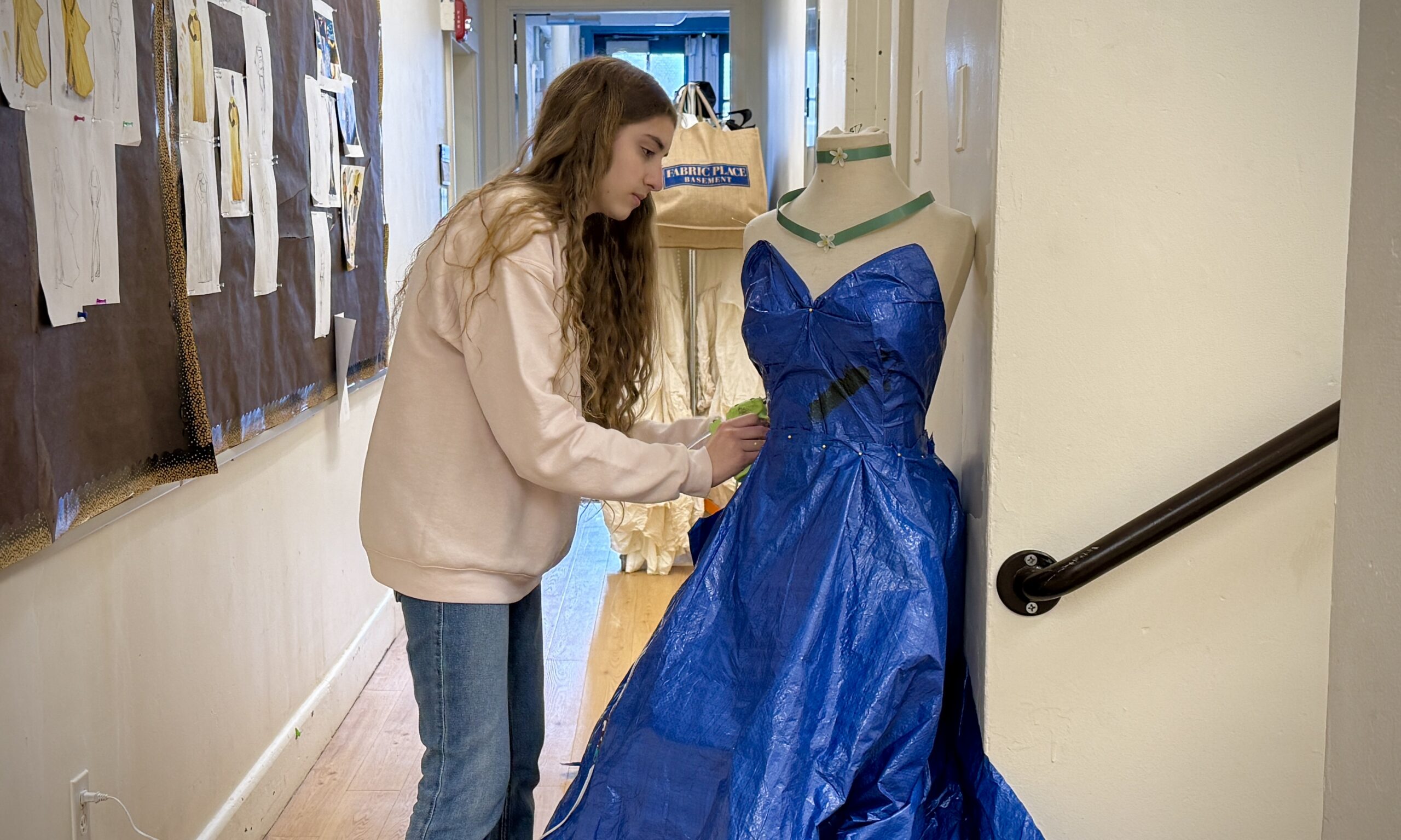 Tucked away two floors beneath the stage of Bradley Hall, Bethany Eddy’s costume studio is one of many hidden gems on Beaver’s campus. You can hear the space before you see it—the hum of sewing machines, the snip of scissors, and endless conversation. But the true magic is what happens inside the studio. At any given moment, one can look in and see students working on a variety of projects all at once: adding the finishing touches to a costume for an upcoming musical, sewing a dress to wear to graduation, or researching fashion history for an SDP.